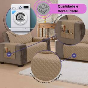 Protetor de Sofá Matelado 3 Lugares com Acabamento Refinado Variação: Cáqui O Protetor de Sofá Classic é a escolha ideal para quem busca proteção com excelente custo-benefício, combinando funcionalidade e estilo para o seu ambiente. Design Matelado e Moderno: Este modelo apresenta um padrão matelado em linha, onde as costuras formam elegantes desenhos de losangos, proporcionando não apenas proteção, mas também um toque moderno e sofisticado ao seu sofá. Praticidade com Bolsos: Incorporando funcionalidade ao seu dia a dia, o Classic conta com bolsos estrategicamente localizados em um dos braços da capa. Essa adição proporciona um espaço conveniente para armazenar pequenos itens, mantendo tudo ao seu alcance. Acabamento Impecável: As bordas do protetor são cuidadosamente finalizadas em bainha, garantindo um acabamento refinado e durabilidade estendida. Cada detalhe é pensado para elevar a estética do seu sofá. Especificações Técnicas: Conteúdo da Embalagem: 01 Protetor de Sofá Classic 3 Lugares King Medidas Aproximadas Largura x Altura : Largura do assento da capa: 1,80 m para garantir o ajuste perfeito, meça a largura do assento do seu sofá de um braço a outro, desconsiderando os próprios braços e encontre a medida do assentos do seu sofá Capa: 1,80 x 1,90 m Braços: 0,40 x 0,80 m cada Medida total do produto com os braços: 3,40 x 1,90 m Composição de Materiais: Tecido: 100% Poliéster Manta: 100% Poliéster Forro: 100% Polipropileno Detalhes Adicionais: Matelado em linha para maior resistência Bolsos funcionais em um dos braços Acabamento refinado em bainha Lavagem em máquina no modo delicado para facilitar a manutenção Informações Importantes: As fotos do produto são representativas, e as tonalidades de cor podem variar de acordo com o monitor ou lotes de tecido diferentes. Recomendamos verificar as medidas na descrição junto ao conteúdo da embalagem. Informações Gerais: - Material visual ilustrativo; - Pode haver alterações na tonalidade da cor da imagem do produto, devido a diferença de telas de visualização; - Fique atento a à descrição do produto, podendo não apresentar todas as peças que constam no material visual; - contra defeito de fábrica.