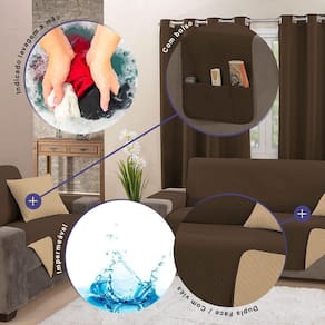 A capa de sofá é cuidadosamente desenvolvida com um material interno que retém líquidos, prevenindo e reduzindo os impactos de possíveis acidentes no seu estofado. Sua versatilidade é evidenciada pelo design que permite o uso dos dois lados, cada um apresentando uma opção de cor distinta, permitindo que você renove o visual do seu ambiente conforme sua preferência.