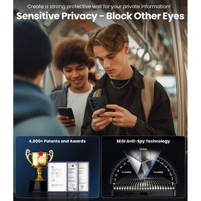- [Sensibilidade ao toque suave] Feito com filme de vidro temperado ultrafino de 0,25 mm e revestido com uma camada oleofóbica de plasma, este protetor de tela para Galaxy S25 Ultra traz um excelente equilíbrio de proteção de privacidade e sensibilidade ao toque. Desfrute de operações rápidas de aplicativos e jogos responsivos com nossa película protetora.