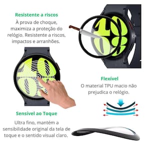 Protetor de tela para novo galaxy watch 6 44mm - nano 3d Cor: borda preta Qualidade e compra garantida Atendimento qualificado Enviamos seu pedido em até 1 dia útil após confirmação do pagamento
