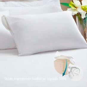 Possui tecido impermeável fundido ao tecido superior 100% algodão e tecido inferior 100% poliuretano. Impede a passagem de óleos e líquidos, tecido ultrafino e não esquenta. Fácil de lavar, não alergênico, ou seja, protege contra ácaros, fungos e bactérias. Perfeito para proteger o seu travesseiro. Foto meramente ilustrativa.