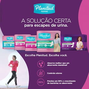 O Protetor Diário Plenitud Femme Noturno foi desenvolvido para você que deseja segurança e discrição para lidar com escapes intensos de urina. Possui tecnologia que neutraliza odores e garante até 3x mais absorção do que um absorvente menstrual. Pode ser usado diariamente, pois garante descrição e conforto. Componentes atóxicos não propensos a causar irritação em contato com a pele. Em caso de irritação suspender o uso.