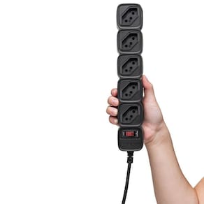 Distância maior entre as tomadas: Com design exclusivo, o EPE 205 possui 5 tomadas e facilita a conexão de diversos aparelhos com tomadas mais distantes uma das outras.