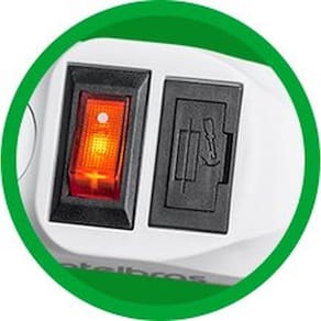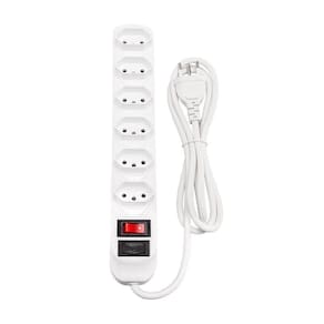 Seis tomadas Conecta vários equipamentos eletrônicos simultaneamente.