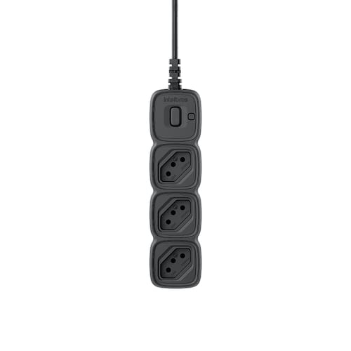 • Conta com três tomadas padrão brasileiro, tomadas afastadas para fontes maiores e botão liga e desliga inteligente, que dispensa fusível. Sua dupla proteção com varistor e chave rearmável garante mais segurança e praticidade no uso contínuo.