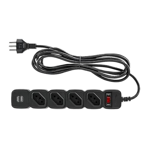 Protetor Eletronico Intelbras Epe204 4 Tomadas 2 Usb Preto Descricao O protetor eletronico EPE 204 USB+ tem 4 tomadas e 2 portas USB para conectar e carregar seus dispositivos sem preocupacoes. Ele esta disponivel na cor preta ou branca, e com 1 ou 3 metros de cabo. Alem disso, o EPE tem dupla protecao com chave inteligente contra curto-circuito e sobrecarga, e varistor contra surtos de tensaoSeguranca em dose dupla para seus equipamentoDupla protecao com chave inteligente contra curto-circuito e sobrecarga, e varistor contra surtos de tensaoDistancia maior entre as tomadasCom 4 tomadas em disposicao diagonal, o EPE 204 USB+ facilita a conexao de plugues que ocupam mais espaco.Carregue seus dispositivos USBO EPE 204 USB tem duas portas USB para que voce conecte e carregue facilmente seus dispositivos, como smartphones, tablets ou caixas de som.Conexoes mais distantesO EPE 204 USB+ esta disponivel em versoes com 3 metros de cabo, para facilitar a conexao de equipamentos a maiores distancias das automaticoO bivolt automatico possibilita conexoes mais seguras e sem preocupacoes com a tensao que a rede eletrica .*Imagens meramente ilustrativas.Especificacao Tecnica Caracteristicas tecnicas > Tensao nominal: 100-240Vac (Bivolt automatico)> Corrente maxima: 10A> Potencia maxima de operacao: 1270W(127V) e 2200W(220V)> Frequencia da rede eletrica: 50-60Hz> Conexao de entrada: Plugue 2P+T (NB 14136) 10A> Comprimento do cabo de forca: 3 metros> Chave inteligente com indicador luminoso de funcionamento> Tecnologia de protecao: Varistor contra surtos de tensao> Chave inteligente tipo disjuntor (circuit breaker), protecao contra curto-circuito e sobrecarga> Maxima absorcao de energia: 125Jaulesrequencia de operacao50-60HzModelo do produtoEPE 204 USB PT +CorPretoQuantidade pacote01Comprimento do produto27,2 cmLargura do produto5 cmAltura do produto36 cmPeso do produto0,350 kgNumero de tomadas4Conteudo da embalagem01 EPE 204 USB + Descricao O protetor eletronico EPE 204 USB+ tem 4 tomadas e 2 portas USB para conectar e carregar seus dispositivos sem preocupacoes. Ele esta disponivel na cor preta ou branca, e com 1 ou 3 metros de cabo. Alem disso, o EPE tem dupla protecao com chave inteligente contra curto-circuito e sobrecarga, e varistor contra surtos de tensaoSeguranca em dose dupla para seus equipamentoDupla protecao com chave inteligente contra curto-circuito e sobrecarga, e varistor contra surtos de tensaoDistancia maior entre as tomadasCom 4 tomadas em disposicao diagonal, o EPE 204 USB+ facilita a conexao de plugues que ocupam mais espaco.Carregue seus dispositivos USBO EPE 204 USB tem duas portas USB para que voce conecte e carregue facilmente seus dispositivos, como smartphones, tablets ou caixas de som.Conexoes mais distantesO EPE 204 USB+ esta disponivel em versoes com 3 metros de cabo, para facilitar a conexao de equipamentos a maiores distancias das automaticoO bivolt automatico possibilita conexoes mais seguras e sem preocupacoes com a tensao que a rede eletrica .*Imagens meramente ilustrativas.Especificacao Tecnica Caracteristicas tecnicas > Tensao nominal: 100-240Vac (Bivolt automatico)> Corrente maxima: 10A> Potencia maxima de operacao: 1270W(127V) e 2200W(220V)> Frequencia da rede eletrica: 50-60Hz> Conexao de entrada: Plugue 2P+T (NB 14136) 10A> Comprimento do cabo de forca: 3 metros> Chave inteligente com indicador luminoso de funcionamento> Tecnologia de protecao: Varistor contra surtos de tensao> Chave inteligente tipo disjuntor (circuit breaker), protecao contra curto-circuito e sobrecarga> Maxima absorcao de energia: 125Jaulesrequencia de operacao50-60HzModelo do produtoEPE 204 USB PT +CorPretoQuantidade pacote01Comprimento do produto27,2 cmLargura do produto5 cmAltura do produto36 cmPeso do produto0,350 kgNumero de tomadas4Conteudo da embalagem01 EPE 204 USB +