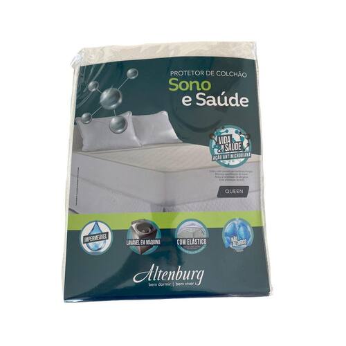 Protetor Impermeável Com Elástico Queen Altenburg O protetor de colchão sono e saúde possui ação antimicrobiana contra fungos, ácaros e bactérias. É impermeável e impede a passagem de água, óleos e líquidos para o colchão , mantendo limpo e com aparência de novo por muito mais tempo. Produzido com tecido semelhante ao do colchão em 100% poliéster, o protetor de colchão sono e saúde slim é ideal para quem quer proteger o colchão sem interferir na aparência da cama. Fácil e prático de usar, possui ajuste perfeito ao colchão e pode ser lavado em máquina. Tecido superior: 100% poliéster tecido inferior: 100% poliuretano. Medida: 1,60x2,00x40cm Ficha técnica - Materiais: Poliéster - cor: branco - Comprimento: 200 - Largura: 158 - Ação antimicrobiana contra fungos, ácaros e bactérias: Sim - Anti Alérgico: Sim - Elástico na Laterial: Sim - Tamanho: Queen Marca: Não Informado Ean: 7909202394531