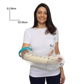 Fabricado com material impermeável, flexível e resistente, o protetor possui vedação segura, que impede a entrada de água sem comprometer o conforto. Ideal para uso em ambientes domiciliares ou hospitalares, é indicado para pessoas em recuperação cirúrgica ou com restrições de exposição à umidade na região do braço.