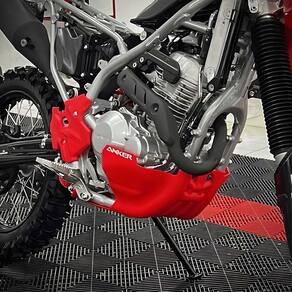 Produzido em polímero de alta resistência para maior proteção, possui também o protetor do link de suspensão traseira integrado garantindo eficiência nas trilhas, enduro, motocross e outras modalidades.