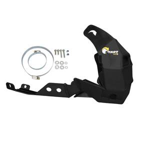 Para a instalação é necessário remover o protetor de motor antigo, em seguida, limpar a área ao redor do motor para garantir uma superfície sem impurezas e instalar o novo utilizando as abraçadeiras e parafusos já inclusos.