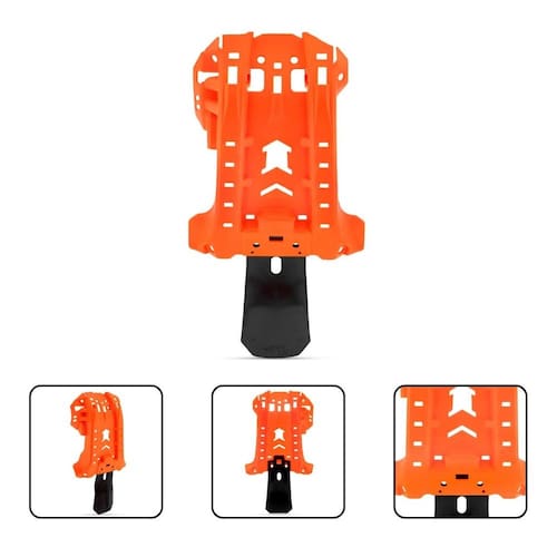 Projetado para proteger o motor e o link da suspensão da moto contra danos causados por pedras, detritos e impactos durante a pilotagem em terrenos acidentados.