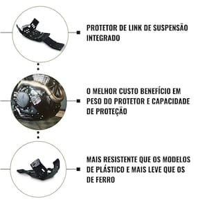 Sua construção resistente suporta não apenas impactos diretos de pedras e raízes, mas também condições extremas de lama e areia, garantindo que você possa enfrentar os obstáculos mais técnicos sem medo de danificar componentes críticos do seu motor.