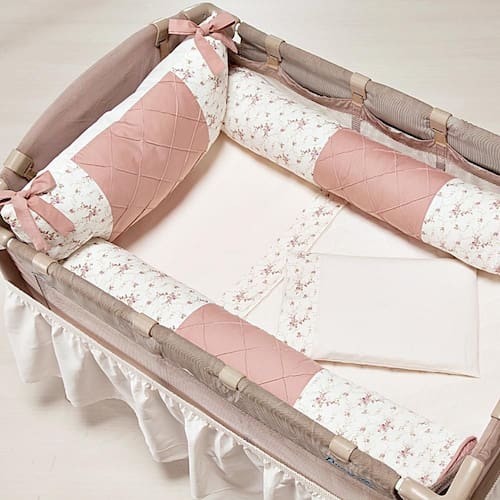 Protetor Para Berço Desmontável 3 Peças Floral Rosê