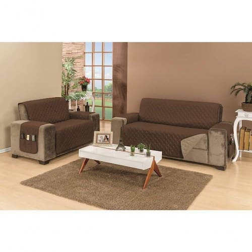 Confeccionado com tecido superior e inferior 100% microfibra, enchimento em 100% poliéster e com acabamento em viés, agora a qualidade e o conforto do seu sofá estão garantidos. Matelado em formato de losangos, tamanho 5x5, o tecido do seu protetor fica mais firme, trazendo sofisticação, beleza e conforto ao seu sofá. Além disso, outra grande vantagem deste lindo protetor é que ele é dois em um, pois ele possui dupla face e pode ser dos dois lados, com cada lado de uma cor, para você poder variar ainda mais o visual do seu ambiente, sempre que quiser. Cada protetor possui porta objetos em um dos braços do sofá, podendo ser utilizado nas duas faces. Além disso, o protetor garante alta proteção ao seu sofá, conservando-o muito mais, por um tempo prolongado.