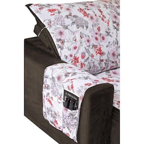Protetor de sofá retratil dois lugaresO modelo retrátil estampado é produzido com tecido 60% algodão e 40% poliéster.Contém estampas lindas, e um ótimo acabamento em viés. Não é matelado.A capa protetora traz segurança ao seu sofá contra manchas e sujeiras que possam corromper a integridade do seu sofá, de forma elegante e sofisticada.Acompanha uma alça na parte superior para evitar que o protetor escorregue no sofá.Largura do assento da capa com as 2 partes juntas: 2,50mPara medir assento do seu sofá deve desconsiderar os braços, medindo apenas os assentos.Essa medida do seu sofá será aproximadamente o tamanho da capa protetora.Protetor para assento de 2,50m:2 partes, sendo: 1,25m larg. X 2,40m altura cada parte 2 braços: 90cm x 50cmContém porta objetos em ambos os lados.Composição:Tecido superior e inferior: 60% algodão / 40% poliéster.