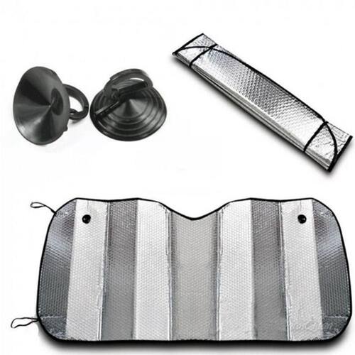 - Modelo dobrável com elásticos para fixação que facilita o transporte; - Fabricado em alumínio e polietileno, conta com aplicação universal, sendo instalado no vidro com as ventosas; - Com acabamento metalizado, o para sol ainda oferece como benefício evitar o ressecamento do painel do carro para que ele fique sempre perfeito; - Modelo Universal, ou seja, é compatível com qualquer tipo de automóvel; - proteção Contra Raios UV; - Reduz a Temperatura Interna; - Acompanha Ventosas para Fixação; Medidas Aproximadas LxA : 125cm x 60cm