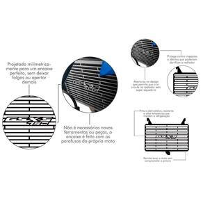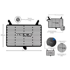 Protetor de Radiador para Suzuki GSX-S 750 - 2017 a 2024 Alta proteção com design esportivo e acabamento de fábrica O protetor de radiador é um item essencial para proteger seu sistema de arrefecimento contra impactos de pedras, insetos e sujeiras, sem comprometer a ventilação do radiador. Fabricado em aço inoxidável com corte a laser de alta precisão, esse acessório agrega estilo, resistência e longa durabilidade. Especificações Técnicas:
