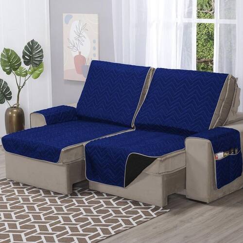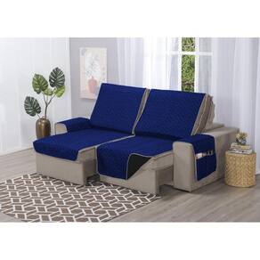 Protetor de Sofá Retrátil Capa 4 Lugares 2,40m de Assento Dupla Face Azul Royal e Preto Além de manter seu sofá limpo e novo por mais tempo, os protetores de sofá são grandes aliados na decoração, pois você pode combinar com cortinas, tapetes, capas de almofada e itens decorativos. Também são ideais para quem tem pets que adoram tirar um cochilo no sofá.