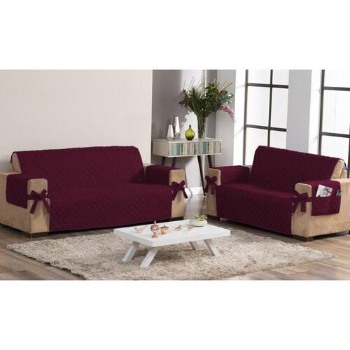 Protetor Sofá Vinho Com Laço e Porta Objetos 2 e 3 Lugares