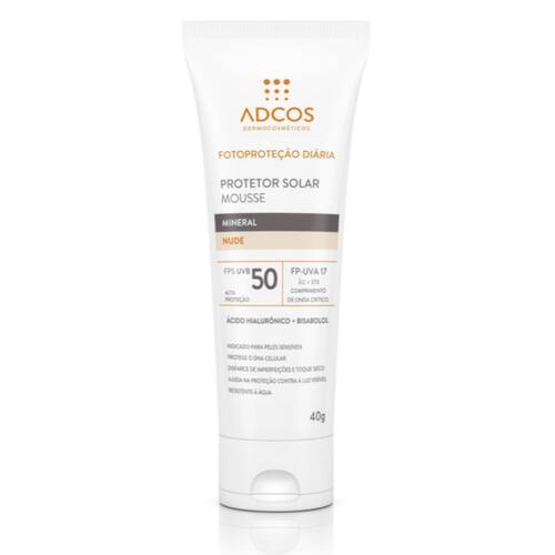 O que é e para que serve o Protetor Solar Mousse Adcos Mineral Nude FPS50? O Protetor Solar Facial Mousse da Adcos é ideal para proteger a pele do rosto contra os raios UV - FPS 50 - e para disfarçar imperfeições, poros e rugas. Sua textura em mousse é ultraleve, excelente para todos os tipos de pele e especialmente as oleosas, já que ajuda a controlar a oleosidade por 10 horas. A fórmula conta, ainda, com o Ácido Hialurônico, que acalma e repara a pele, e com a Vitamina E, um potente antioxidante que protege a pele contra os radicais livres e dos danos da radiação solar. Cor Nude. Mais benefícios Feito especialmente para as peles brasileiras. Deixa a pele lisa, uniforme e aveludada. Protege dos danos causados pela poluição e luz visível. Vegano. Desenvolvido com ingredientes biocompatíveis. Como usar o Protetor Solar Mousse Adcos Mineral Nude FPS 50? Aplique abundantemente antes da exposição ao sol. Se a quantidade aplicada não for adequada, o nível de proteção será significativamente reduzido. É necessária a reaplicação do produto para manter a sua efetividade. Reaplicar sempre, após sudorese intensa, nadar ou banhar-se, secar-se com toalha e durante a exposição ao sol. Ingredientes Cyclopentasiloxane, Aqua, Zinc Oxide, Isododecane, Titanium Dioxide, Caprylyl Methicone, Peg-10 Dimethicone, Polyamide-5, Isopropyl Lauroyl Sarcosinate, Dimethicone/Bis-Isobutyl Ppg-20 Crosspolymer, Peg/Ppg-20/15 Dimethicone, Silica, Dimethicone/Vinyl Dimethicone Crosspolymer, Styrene/Acrylates Copolymer, Pentylene Glycol, Hydrated Silica, Polyurethane-35, Sodium Chloride, Ci 77492, Hydrogen Dimethicone, Glycerin, Octyldodecanol, Phenoxyethanol, Aluminum Hydroxide, Caprylyl Glycol, Triethoxycaprylylsilane, Bisabolol, Ethylhexylglycerin, Tocopheryl Acetate, Ci 77491, Edta, Benzylidene Dimethoxydimethylindanone, Ci 77499, Sorbitan Oleate, Stearic Acid, Magnesium Hydroxide , Decarboxy Carnosine Hcl, Butylene Glycol, Methylpropanediol, Hydrolyzed Hyaluronic Acid, Phenylpropanol. Advertências Uso externo. Evite contato com os olhos; caso isso aconteça, enxágue-os com água em abundância. Descontinue o uso se surgirem irritações na pele. Se a quantidade aplicada não for adequada, o nível de proteção será significativamente reduzido. O produto ajuda a prevenir as queimaduras solares, mas não oferece nenhuma proteção contra a insolação. Evite exposição prolongada das crianças ao sol. Para crianças menores de 6 (seis) meses, consultar um médico. Mantenha fora do alcance das crianças.