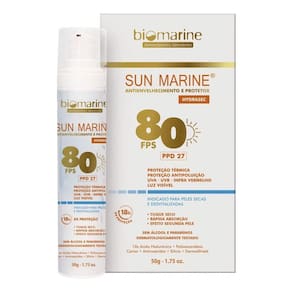 O Protetor Solar Sun Marine FPS80 da Biomarine oferece alta proteção solar associada a ativos antienvelhecimento. Ajuda a prevenir os sinais de envelhecimento precoce e mantém a pele hidratada. Possui textura leve, oil free e rápida absorção. Ideal para uso diário em todos os tipos de pele. Deixa a pele protegida, macia e com toque suave.