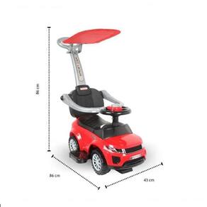 Um presente maravilhoso para seus filhos. Seu design do pé ao chão permite que as crianças aprendam a andar sozinhas. Você pode aproveitar o tempo entre pais e filhos empurrando este brinquedo de passeio. Você não se arrependerá de comprar esta carona segura para bebês no carro, sem design de bateria e volante fácil de controlar, não se preocupe. Características:\ n • Design do chão ao chão, perfeito como brinquedo deslizante\ n • Alça infantil, perfeita como andador ou carrinho de mão\ n • Armazenamento embaixo do assento, sua pequena base secreta, guarde seu lanche e brinquedo\ n • Espaço de armazenamento para comida, em caso de fome, reduza as interrupções e gere foco\ n • Volante grande, fácil de controlar\ n • Freio estabilizador na parte inferior, caso as crianças escorreguem ou empurrem com muita força\ n • Design de 4 rodas para uma condução suave\ n • Assento e encosto em PP, confortáveis e protegem o desenvolvimento da coluna do bebê\ n\ nGuia mais seguro para bebês\ n • Total dimensão: 62x28x41,5 cm (LxAnxAl) • Altura do assento: 20 cm\ n • Carga máxima: 30 kg • Idades: 1,5 a 3 ANOS