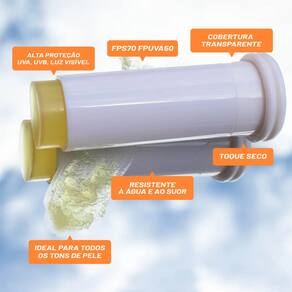 Seu formato em bastão faz a aplicação ficar descomplicada e também evita desperdício de produto, além de facilitar o transporte para reaplicação ao longo do dia.