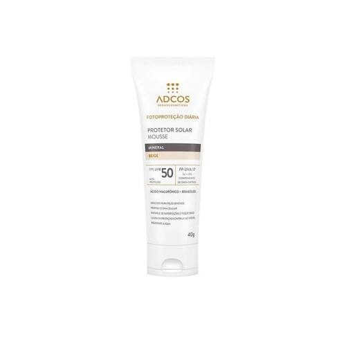 Protetor solar facial mousse com cor adcos - mineral fps50 b Controlado não Laboratorio adcos Taxclassid nenhum Largura 11.000000 Altura 6.000000 Comprimento 16.000000 Rmpagsegurolastupdate 0 Protetor solar facial mousse com cor adcos - mineral fps50 beigebr / Principais ativos e beneficios br / br / br / Ácido hialurônico de baixo peso molecular: hidrata profundamente, estimula o colágeno e reduz rugas visivelmentebr / br / br / Carnosina: ação antiglicante e deglicante que protege as fibras de colágeno, melhorando a firmeza e prevenindo a flacidezbr / br / br / Bisabolol e vitamina e: acalmam, reparam e protegem contra os danos dos radicais livresbr / br / br / Symurban: escudo antipoluição que neutraliza partículas tóxicas do ambiente urbano, prevenindo manchas e envelhecimento precocebr / br / br / Diferenciais br / br / br / Textura mousse com cobertura média, ultraleve e fácil de espalharbr / br / br / Oil-free, não comedogênico e hipoalergênico, ideal para peles oleosas ou acneicasbr / br / br / Toque seco com controle da oleosidade por até 10 horasbr / br / br / Disfarça poros e rugas com efeito óptico imediatobr / br / br / Disponível em 5 cores adaptáveis, atendendo à diversidade da pele brasileirabr / br / br / Sem parabenos e com fórmula segura que respeita até as peles mais sensíveisbr / br / br / Protege o dna celular e restaura a barreira cutânea com ação antioxidante e antipoluiçãobr / br / br / Como usar:br / Aplique uma camada generosa do protetor solar sobre a pele limpa e seca, 30 minutos antes da exposição solar. Para garantir a proteção contínua, reaplique a cada 2 horas ou sempre após nadar, suar excessivamente ou secar-se com toalha. Marca: Não Informado Ean: 7897975698959