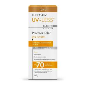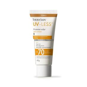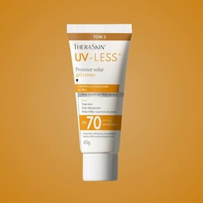 Protetor solar facial theraskin uv-less fps 70 gel creme tom Nome protetor solar facial theraskin uv-less fps 70 gel creme tom 2 40g Titulo protetor solar facial theraskin uv-less fps 70 gel creme tom 2 40g Marca theraskin Cor branco Familia-da-cor branco Tamanho 40 g Ingredient-list uva 30 Material loção Protetor solar facial theraskin uv-less fps 70 gel creme tom 2 40go que é e para que serve o protetor solar facial theraskin fps 70O protetor solar facial theraskin fps 70 é um produto desenvolvido para proteger a pele contra os efeitos nocivos da radiação solar uv. Sua fórmula avançada previne o fotoenvelhecimento, uniformiza o tom da pele e oferece um acabamento com toque seco. Com tecnologia one tone system, adapta-se a diferentes tonalidades de pele brasileira.Benefícios e diferenciais do protetor solar facial theraskin fps 70alta proteção solar com fps 70 e uva 30.Previne os sinais do fotoenvelhecimento da pele.Textura leve, de rápida absorção e acabamento seco.Resistente à água e ao suor.Tecnologia one tone system: uniformização do tom da pele com tons exclusivos para peles brasileiras.Como usar o protetor solar facial theraskin fps 70Aplicar abundantemente sobre a pele do rosto 15 minutos antes da exposição ao sol.Reaplicar sempre que necessário, especialmente após sudorese intensa, nadar ou secar-se com toalha. Marca: Não Informado