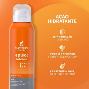 Episol Intense FPS 30 é um protetor solar em formato spray que proporciona ação hidratante, ação antioxidante, rápida absorção e pode ser aplicado em pele molhada. É prático e tem alta proteção solar. Modo de Uso: Agite antes de usar. Para funcionamento da válvula, utilizar o produto com o tubo sempre na vertical (com o aplicador voltado para cima). Aplique o produto em abundância e uniformemente a 20cm de distância da pele antes da exposição ao sol. Certifique-se de que o produto foi aplicado por toda a área a ser exposta ao sol, espalhe com as mãos. Se a quantidade aplicada não for adequada, o nível de proteção será significativamente reduzido. É necessária a reaplicação do produto para manter sua efetividade.