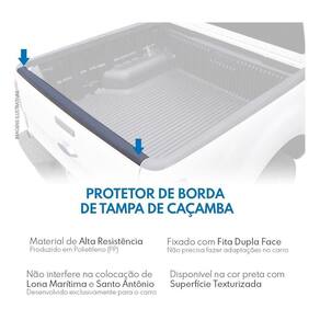 Fabricado em plástico polietileno, protege a borda da caçamba contra pequenas batidas, riscos ou manchas.