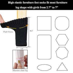 Preocupa-se com arranhões no seu piso de madeira/azulejo/cerâmica ao mover móveis? Envergonhado em fazer um som desagradável ao arrastar cadeiras? Você pode experimentar nossos protetores de perna de cadeira para pisos de madeira, madeira, cerâmica, azulejo ou outros pisos brilhantes. Estamos comprometidos em atender às necessidades de decoração de casa, ajudar a resolver os problemas dos clientes. As meias para pernas de móveis fornecem amortecimento suave entre móveis e pisos, farão seus móveis deslizarem bem, sem ruído ou arranhar o chão, protegendo muito bem seus pisos de madeira, bambu, laminado e azulejo. Por que usar nossos protetores de perna de cadeira? Características: Qualidade premium O dobro da espessura Material de fibra de malha de boa qualidade Antiderrapante e seguro Cabe na maioria das formas de perna Durável e reutilizável. Pode ser utilizado por um longo tempo Limpável, lavável na máquina ou à mão Reduz efetivamente o ruído Movendo móveis de forma suave e silenciosa Protegendo o chão de arranhões e danos Protetores de Chão Flexíveis para Cadeira Especificação Material: fibra de malha Largura elástica: 2,5 - 12,7 cm Comprimento: 11 cm Circunferência da perna. Circunferência do ajuste de 6,8 cm a 17,8 cm. Dicas importantes: 1. Nossas almofadas para pernas de cadeira não são adequadas para pernas de cadeira muito pequenas. 2. Mantenha o seu animal de estimação longe das meias, evitando arranhar estas meias. 3. Estas tampas de móveis não são adequadas para uso ao ar livre. O pacote inclui: 24 peças de meias para móveis - Material de alta qualidade: os protetores de perna de cadeira são feitos de fibra de poliéster de alta densidade. Ajuste firme e altamente elástico, não cai facilmente e permanecerá bem nas pernas da sua cadeira. A estrutura de fibra de poliéster e elastano de camada dupla oferece amortecimento suave entre móveis e piso. - TAMANHO: as meias de móveis podem ser esticadas, adequadas para perímetros/circunferência da perna do móvel de 6,9 cm a 17,8 cm, ou diâmetro da perna de 2 a 5,3 cm. A meia para pés de móveis de tricô tem alta elasticidade, para que possam atender à maioria dos formatos de perna, redonda, quadrada, oval, etc. - CARACTERÍSTICAS: Estas meias de perna de móveis protegem efetivamente móveis ou pisos de madeira e reduzem o ruído, protegem sua madeira, concreto, bambu ou piso de azulejo de arranhões e danos ao mover cadeiras ou móveis. Enquanto isso, os móveis podem ser movidos facilmente. - FÁCIL E CONVENIENTE: As botas de perna de móveis são fáceis de instalar nas pernas dos móveis e tirá-las, independentemente da cadeira de cozinha, mesa, mesa de escritório, armário de arquivos, etc. Lavável na máquina, reutilizável. - PACOTE: Incluindo 24 peças de protetores de chão de cadeira preta clássicos + vale-presente especial. Esses serão ótimos produtos para sua vida diária. Estamos comprometidos em fornecer as melhores meias de perna de cadeira e serviço para você. Se você tiver alguma dúvida, a qualquer momento, responderemos a tempo e ajudaremos você a resolver o problema.
