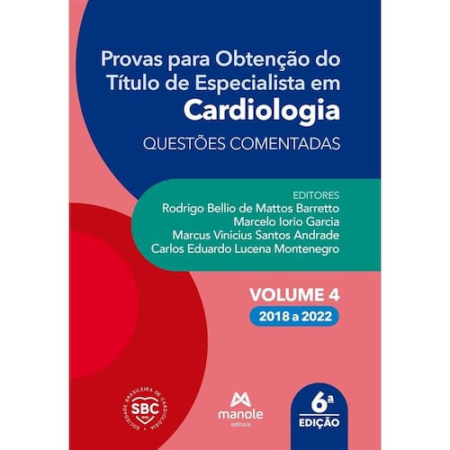 Este livro apresenta questões selecionadas e respectivas respostas das provas de 2018 a 2022 para obtenção do Título de Especialista em Cardiologia. As questões foram comentadas pela Comissão Julgadora do Título de Especialista em Cardiologia (CJTEC/SBC), com os objetivos de auxiliar os estudantes e candidatos ao título a se familiarizarem com as questões e revisitar os temas contemplados no programa de formação do cardiologista no Brasil. Diferentemente das edições anteriores, esta obra traz a divisão em capítulos das grandes áreas de conhecimento em cardiologia, o que facilitará a leitura e a aplicação de seu conhecimento: • Anatomia, fisiologia e cardiopatias congênitas • Aorta • Arritmias • Doença arterial coronariana • Hipertensão • Insuficiência cardíaca • Miscelânea; pericárdio e miocárdio; farmacologia • Síndrome coronariana aguda • Semiologia • Valvopatias Marca: EDITORA MANOLE LTDA -