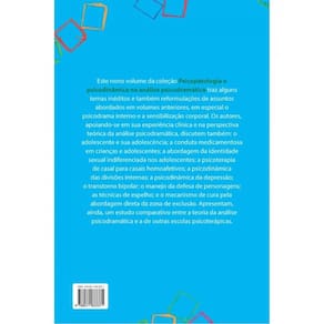 Este nono volume da coleção Psicopatologia e psicodinâmica na análise psicodramática traz alguns temas inéditos e também reformulações de assuntos abordados em volumes anteriores, em especial o psicodrama interno e a sensibilização corporal. Os autores, apoiando-se em sua experiência clínica e na perspectiva teórica da análise psicodramática, discutem também: o adolescente e sua adolescência; a conduta medicamentosa em crianças e adolescentes; a abordagem da identidade sexual indiferenciada nos adolescentes; a psicoterapia de casal para casais homoafetivos; a psicodinâmica das divisões internas; a psicodinâmica da depressão; o transtorno bipolar; o manejo da defesa de personagens; as técnicas de espelho; e o mecanismo de cura pela abordagem direta da zona de exclusão. Apresentam, ainda, um estudo comparativo entre a teoria da análise psicodramática e a de outras escolas psicoterápicas. Textos de: Victor R. C. S. Dias, Virgínia de Araújo Silva, Elizabeth Grecco, Celso Azevedo Augusto, Katia Pareja e Ana Elisa Barbosa de Carvalho Fernandes.
