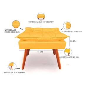 - altura: 52 cm; - largura: 46 cm; - profundidade: 62 cm. O que você está adquirindo: 01 unid. Puff opala com pés de madeira envernizado