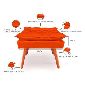 - altura: 52 cm; - largura: 46 cm; - profundidade: 62 cm. O que você está adquirindo: 01 unid. Puff opala com pés de madeira envernizado