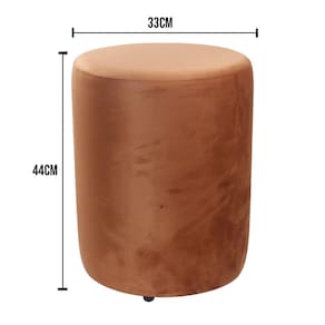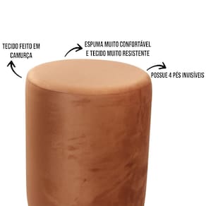 Com medidas de 44 cm de altura e 33 cm de diâmetro, esse pufe possui um peso de 2,85 kg. Sua espuma d28 tem 3 cm de espessura na parte superior e 1 cm nas laterais, proporcionando conforto ao sentar.