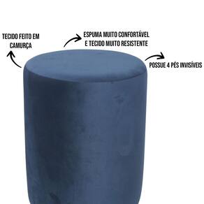 Especificações técnicas: - Material: Madeira de pinus e espuma d-28 - Revestimento: Suede macio - Formato: Redondo - Altura: 44 cm - Diâmetro: 33 cm - Peso: 2,85 kg Marca: Empório Dos Pufes Ean: 7898732691596