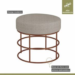 Puff Anunciação Revestimento Linho Mais Decor Cobre/areia O Puff Anunciacao se apresenta como peca chave para a decoracao de sua casa, loja, ou escritorio pois agrega um design contemporaneo e descontraido aos ambientes em que for utilizado. Sem falar do amplo conforto e charme que esse puff trara para seu espaco. Excelente opcao para criar um estilo unico e se destacar entre seus moveis. A base e charmosa e combina perfeitamente com a almofada redonda, se tornando ideal para receber suas visitas e convidados, proporcionando conforto e modernidade. Caracteristicas: Marca: Mais Decor Modelo: Anunciacao Material da Estrutura: Metal Revestimento: Linho Enchimento: Espuma D-23 Material dos Pes: Ferro Possui Pes: 04 Estilo: Moderno Necessita Montagem: Nao Recomendacoes de Uso, Manutencao e Limpeza: Uma boa maneira de aumentar o tempo de vida util do seu sofa e evitar exposicao direta do estofado ao sol, ja que os raios podem queimar e manchar a grande maioria dos tecidos desses itens da sua casa. Escala de Brilho: Fosco Suporta Ate (kg): 120