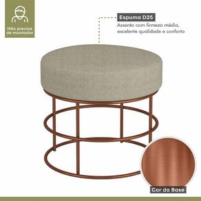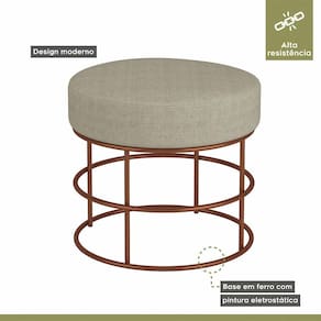 Puff Anunciação Revestimento Linho Mais Decor Cobre/bege O Puff Anunciacao se apresenta como peca chave para a decoracao de sua casa, loja, ou escritorio pois agrega um design contemporaneo e descontraido aos ambientes em que for utilizado. Sem falar do amplo conforto e charme que esse puff trara para seu espaco. Excelente opcao para criar um estilo unico e se destacar entre seus moveis. A base e charmosa e combina perfeitamente com a almofada redonda, se tornando ideal para receber suas visitas e convidados, proporcionando conforto e modernidade. Caracteristicas: Marca: Mais Decor Modelo: Anunciacao Material da Estrutura: Metal Revestimento: Linho Enchimento: Espuma D-23 Material dos Pes: Ferro Possui Pes: 04 Estilo: Moderno Necessita Montagem: Nao Recomendacoes de Uso, Manutencao e Limpeza: Uma boa maneira de aumentar o tempo de vida util do seu sofa e evitar exposicao direta do estofado ao sol, ja que os raios podem queimar e manchar a grande maioria dos tecidos desses itens da sua casa. Escala de Brilho: Fosco Suporta Ate (kg): 120