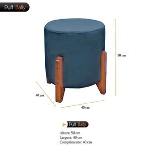 Puff Bally Luxo Banqueta Redonda Madeira Maciça Veludo Azul - WD Decor - Preto