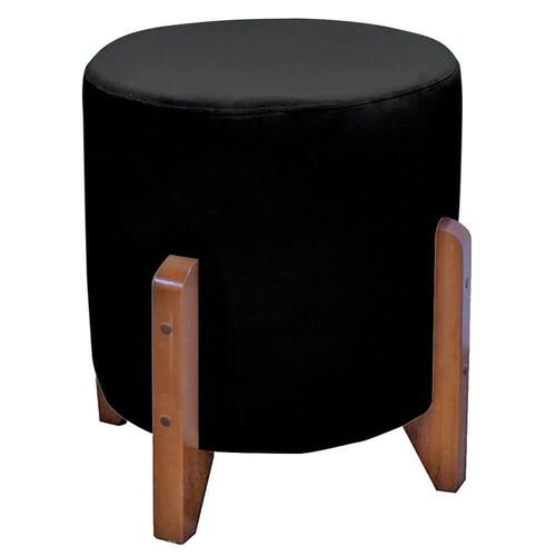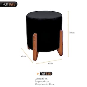 Puff Bally Luxo Banqueta Redonda Madeira Maciça Veludo Preto - WD Decor