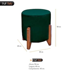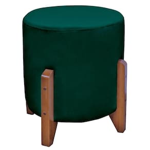 Puff Bally Luxo Banqueta Redonda Madeira Maciça Veludo Verde - WD Decor