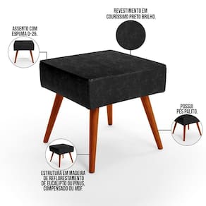 O Puff Banqueta Decorativa Com Pés Palito Lívia W01 Couríssimo Preto Brilho - Lyam Decor é ideal para você que busca por elegância e praticidade em sua decoração! Seus pés delicados transmitem suavidade, harmonizando com o assento estofado, que por sua vez é revestido em Couríssimo, tecido de excelente qualidade.