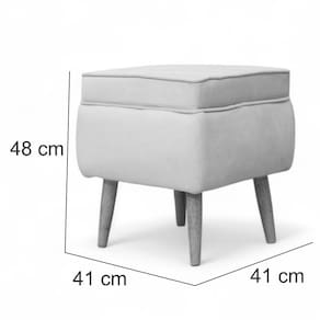 Estrutura: Madeira Maciça de eucalipto de reflorestamentoRevestimento: Tecido Veludo de alta qualidadeFormato: QuadradoAssento: Fixo, em espuma D26Pés: Sim, palito de madeira maciça de eucaliptoPeso: Suporta o peso de 100 KilosDimensões do produto montado