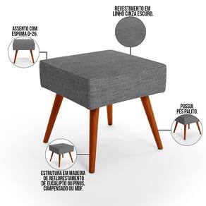 O Puff Banqueta Decorativa Com Pés Palito Lívia W01 Linho Cinza Escuro - Lyam Decor é ideal para você que busca por elegância e praticidade em sua decoração! Seus pés delicados transmitem suavidade, harmonizando com o assento estofado, que por sua vez é revestido em Linho, tecido de excelente qualidade.