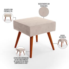 O Puff Banqueta Decorativa com Pés Palito Lívia W01 Suede Bege - Lyam Decor é ideal para você que busca por elegância e praticidade em sua decoração! Seus pés delicados transmitem suavidade, harmonizando com o assento estofado, que por sua vez é revestido em Suede, tecido de excelente qualidade.