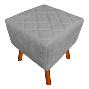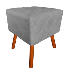 Puff Banqueta Decorativo Estofado Para Quarto Closet Isabella Suede Cinza - LM DECOR