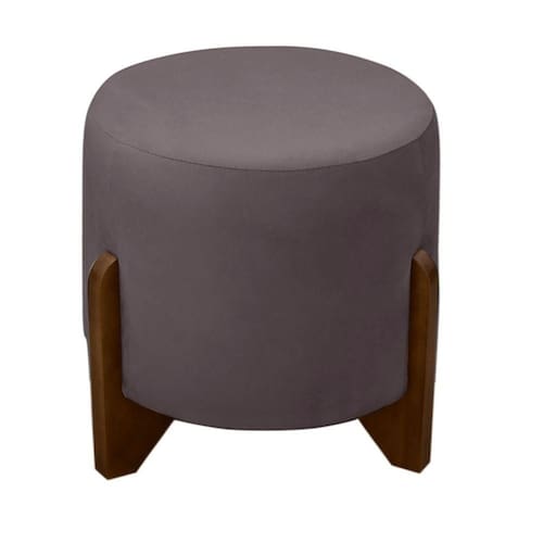 Puff Banqueta Decorativo Luiz Pés De Madeira Linho Grafite Do Lar Móveis E Decoração