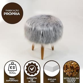 Adicione estilo e aconchego ao seu espaço com o puff de pelos longos. Seu design redondo, modelo banqueta, e revestimento macio garantem conforto e um toque decorativo único. Com dimensões de 50x40x50 cm, ele se adapta facilmente a qualquer ambiente.